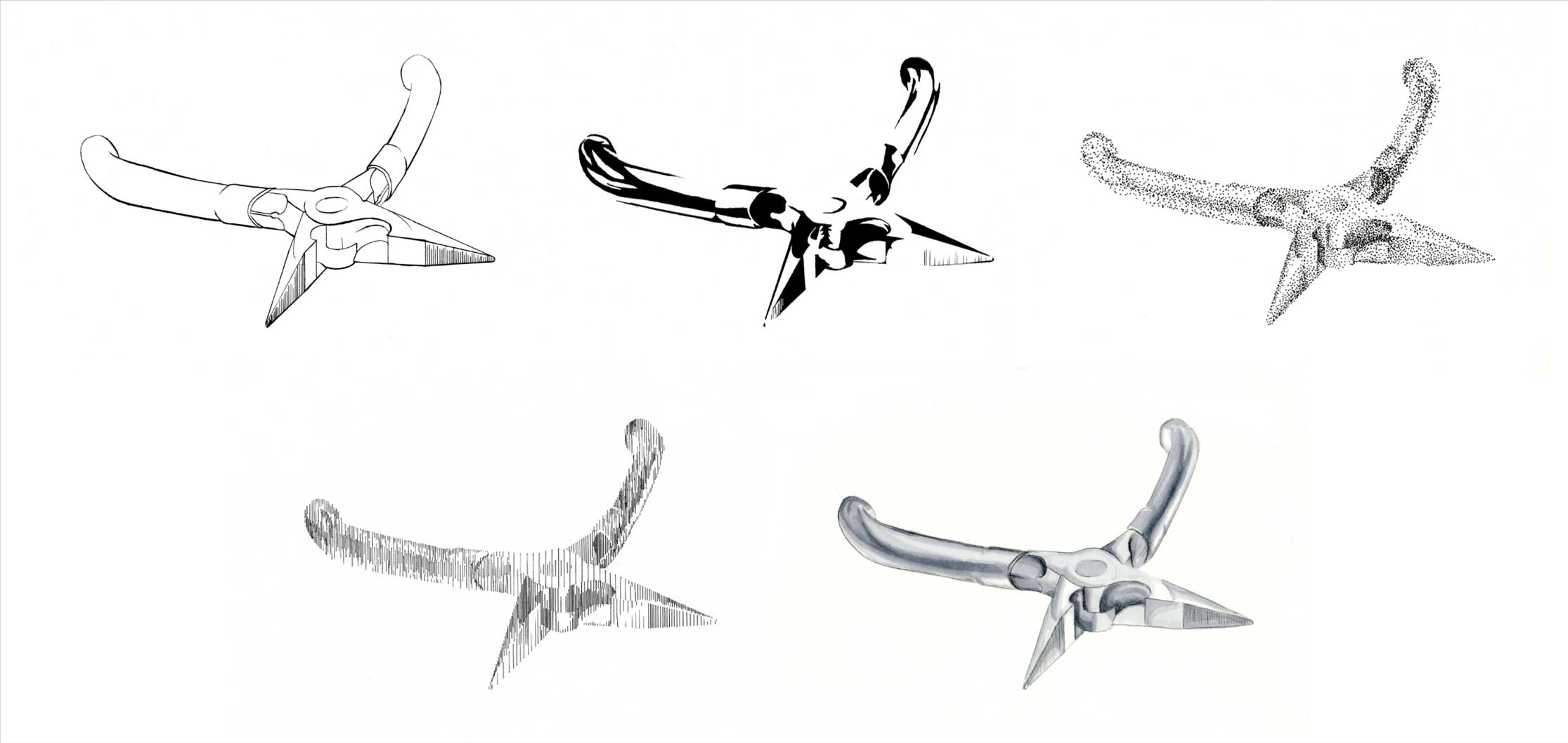—Project: Object Renderings—contour line, high contrast, dot shading, line shading and marker rendering. (G. Goodwin)