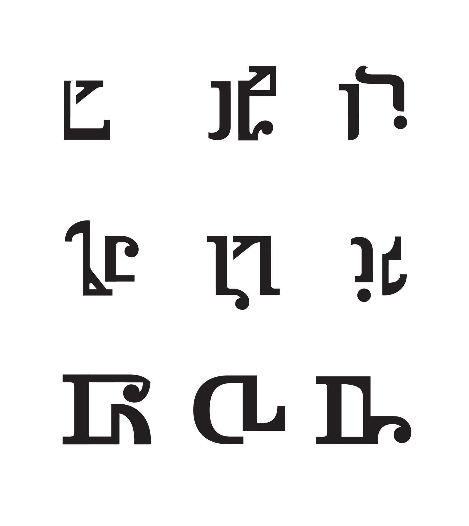 —Project: Develop an awareness of characteristics which bring unity to a typeface or set of symbols, a.k.a. “Klingon” (J. Perin, K. Allen)